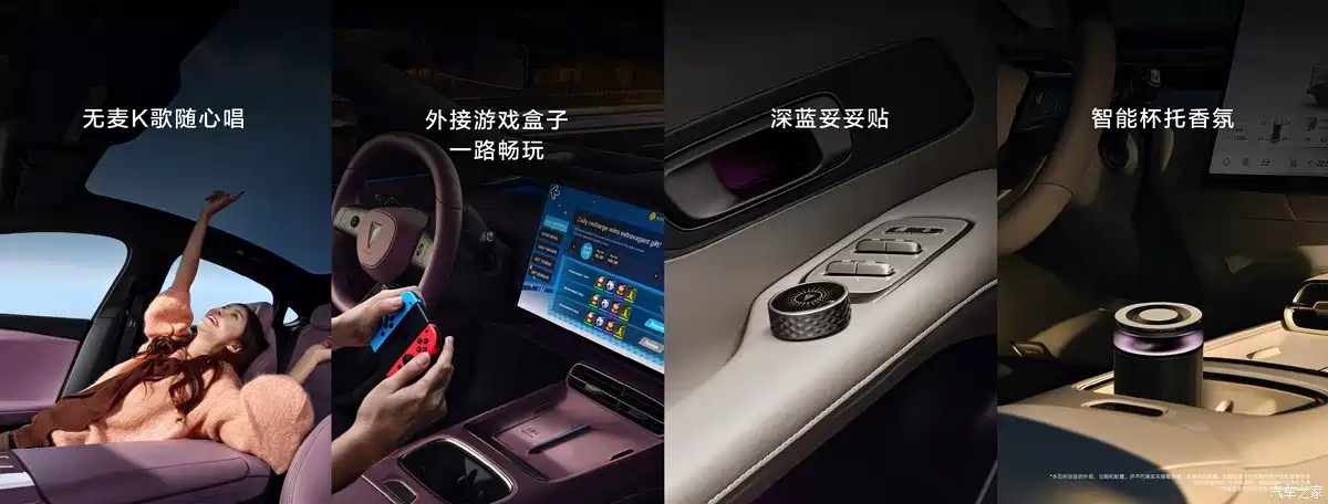 其他配置方面,深蓝L06前排座椅标配通风/加热,副驾配备零重力座椅,支持14向电动调节、8点式按摩。同时,车辆还将全系标配热泵空调系统,音响系统最大功率1280W,18单元构建7.1.4声道。车内配备256色分区呼吸律动氛围灯,并支持无麦K歌。值得一提的是,车辆还将配备深蓝妥妥贴,可以再任意位置进行任意功能调节。