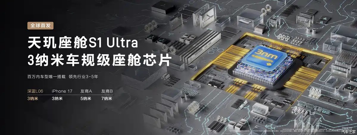 内饰方面,深蓝L06座椅及仪表台采用撞色刺绣工艺点缀,提供90%内饰软包覆盖率,座椅采用环保级PU柔性表皮。车辆提供舒俱来紫、烟晶雾灰、月光石白三款内饰颜色。同时,新车搭载15.6英寸2.5K向日葵中控屏,支持13°智能左右偏转,实现主副驾视角自动切换,同时还配备了50英寸AR-HUD抬头显示。车辆搭载天玑座舱配备S1 Ultra 3纳米车规级座舱芯片,中控滑动、缩放、切换应用流畅顺滑,多任务并行依然丝滑。