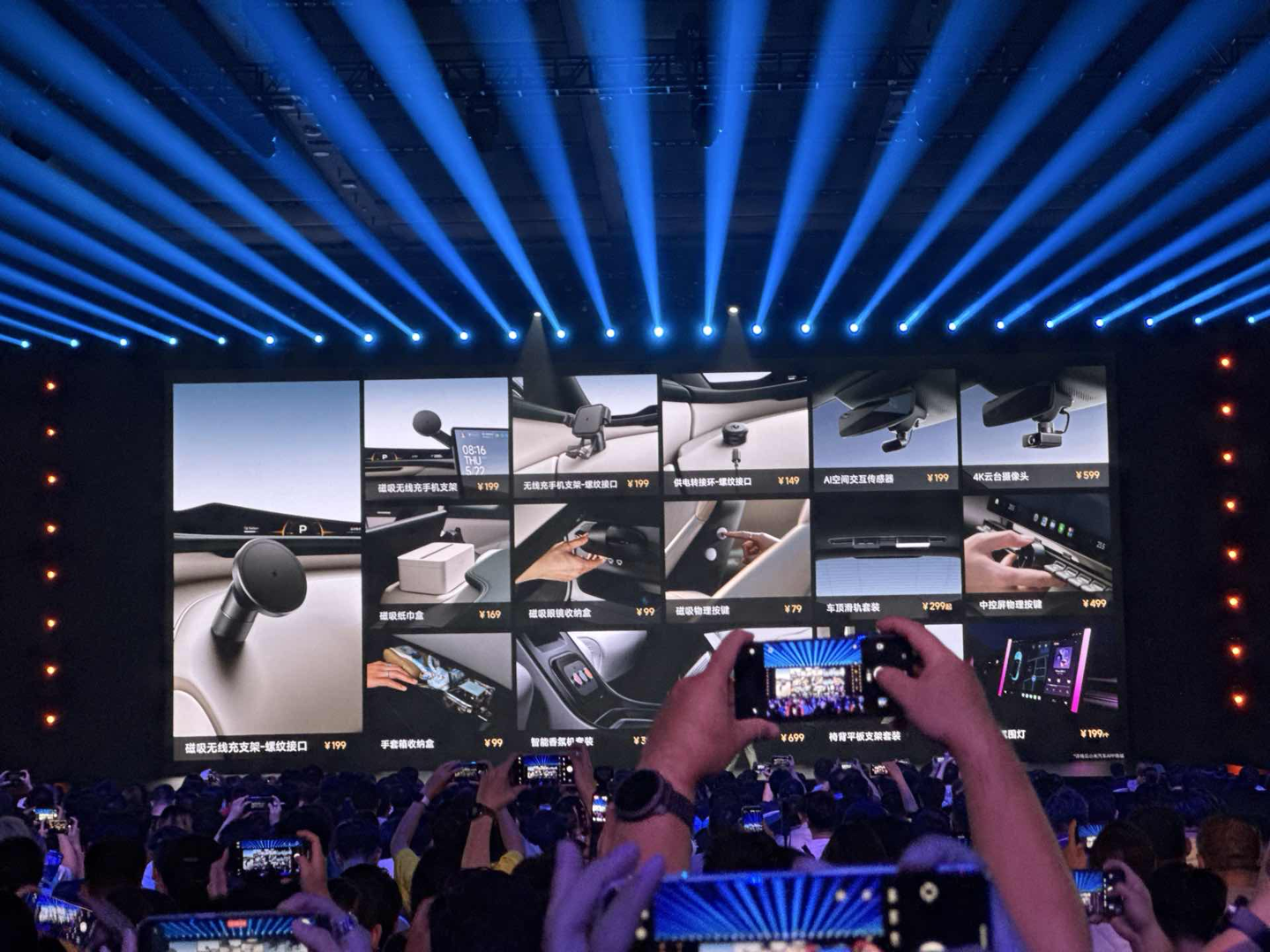 小米 YU7 延续 SU7 的丰富生态扩展,主副驾双侧螺纹口新增 27W 供电,全车提供了 9 处磁吸点位,支持吸住纸巾盒、眼镜盒;提供供电转接环、车载无线充手机支架、磁吸无线充手机支架 3 款 1/4" 标准螺纹接口。