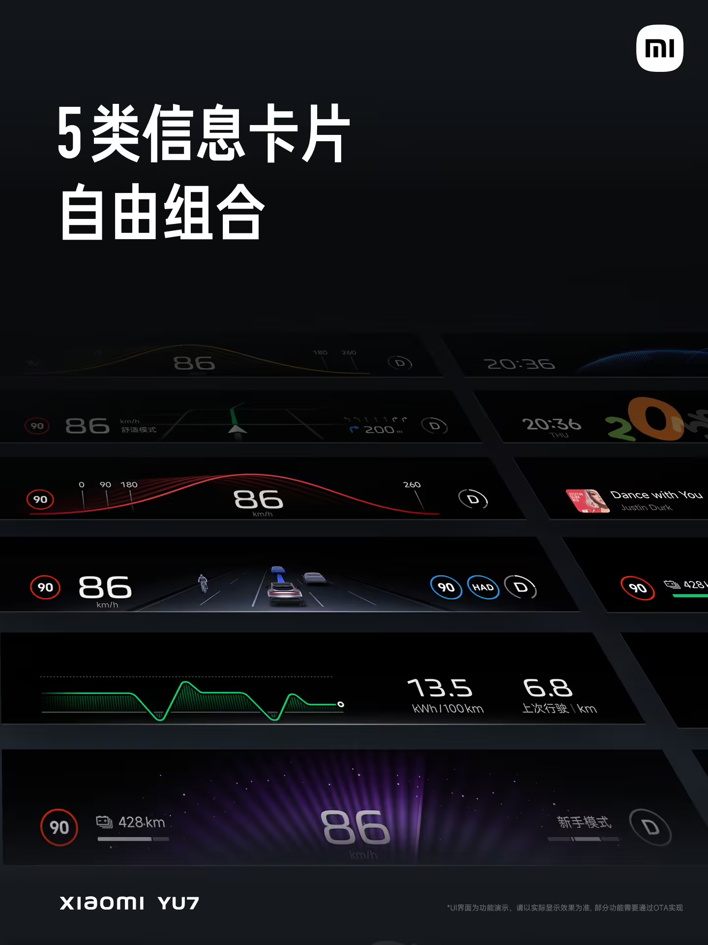 • YU7:单电机后驱,零百加速 5.88 秒,峰值功率 235kW,峰值扭矩 528N・m,最高车速 240km/h。